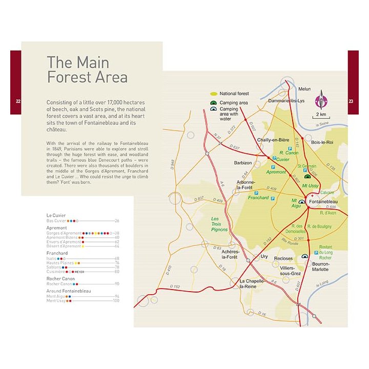 Marked with coloured dots and arrows, they offer the climber a unique way in which to explore each climbing area. Fontainebleau Climbs – The finest bouldering and circuits, written by local climbers Jo and Françoise Montchaussé and Jacky Godoffe, is the perfect way to discover and enjoy these circuits. With descriptions of the areas and the circuits and grades found in each, this easy-to-use guide is full of useful and practical advice, tips on where to go after rain or in hot weather, on accommodation and on child-friendly areas.